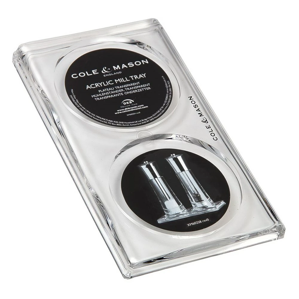 The Acrylic Mill Tray by Cole & Mason is the perfect finishing touch to any presentation or storage of Cole & Mason salt and pepper mills. The sleek and stylish appearance will blend in with your countertop with a curved-out space for each salt and pepper mill and suitable to fit all Cole & Mason mills. The tray will be a great addition to your kitchen by helping to ensure your countertops stay clean of any salt and pepper residues. The Mill Tray is easy to clean by simply wiping over with a damp cloth. This is the perfect accompaniment when purchasing your Cole & Mason mills or include as part of a gift for birthdays, Christmas, or other special occasions.