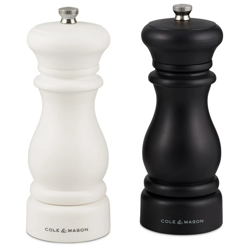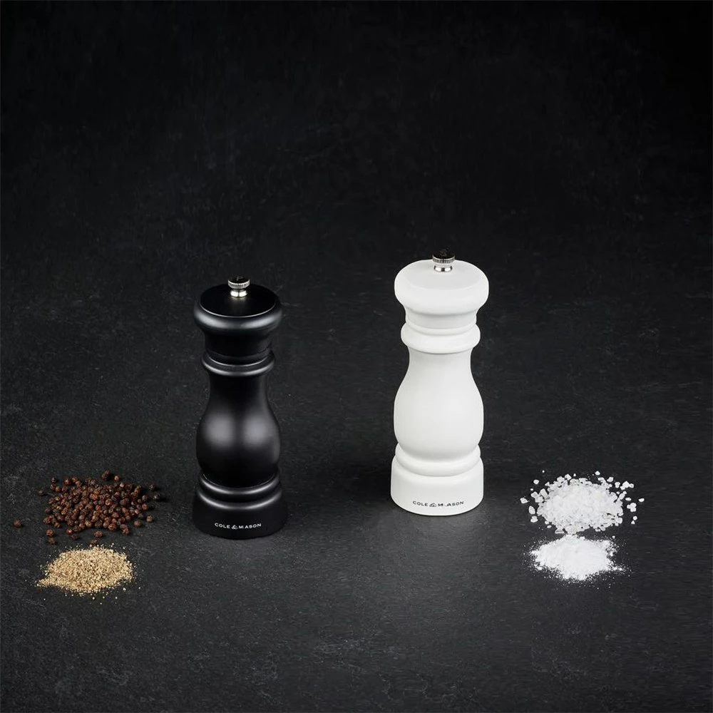The Cole & Mason Southwold Mill set is beautifully designed in the classic Cole & Mason Capstan silhouette. For your convenience the mills have been coloured to be able to tell them apart, black for pepper and white for salt, and are easy to refill down the track by unscrewing the top. The salt and pepper mills feature the diamond sharp ceramic mechanism cutting through the hardest of salt and peppers, allowing for a smooth and even turn. You can easily adjust the grind from fine to course with ease; tighten the knob on the top for a finer grind. For peace of mind the Southwold Mill mechanisms come with a lifetime guarantee and beautifully packaged ready for gifting.