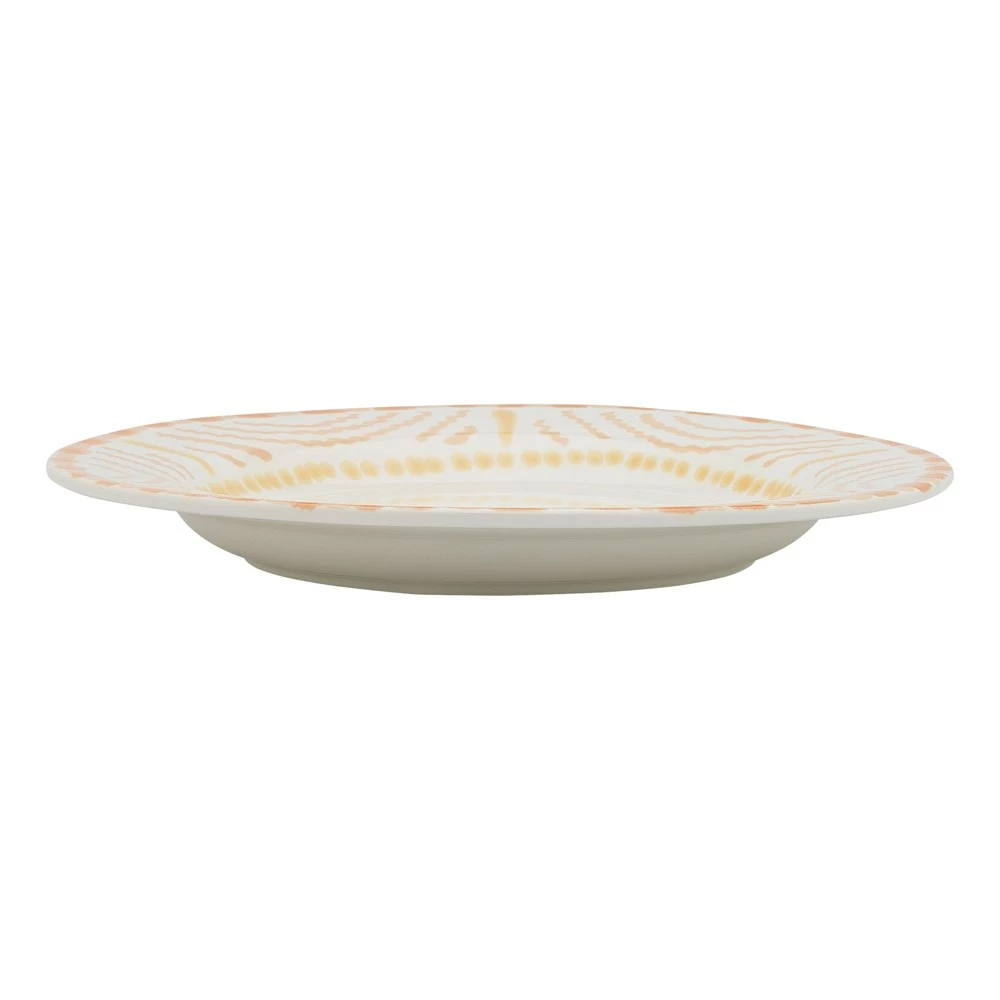 Lay your table with the essence of summer in the form of the beautiful Ecology Arizona Dinner Plate 27cm. Designed in Australia by Heather Piez with inspiration from dry desert days and warm evenings, the Ecology Arizona Dinner Plate 27cm uses radiant yellow and orange hues to represent the powerful heat of the sun. Crafted from quality stoneware, this resilient dinner plate offers a classic body and mildly organic silhouette with tactile features that add texture to the table setting. The refreshing, light, creamy background is adorned with colourful arched motifs that mimic the movement of the ever-rising and setting sun to provide the perfect backdrop to enjoy delicious homecooked meals. Pair the stunning Ecology Arizona Dinner Plate 27cm with other tableware items from the Arizona range to create a flawless summer alfresco dining atmosphere.