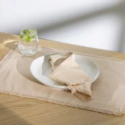 Add a beautiful textural layer to your alfresco dining setting with the Ecology Fray Set of 4 Placemats Apricot