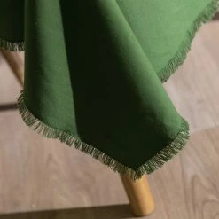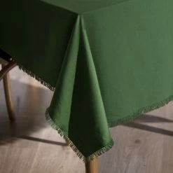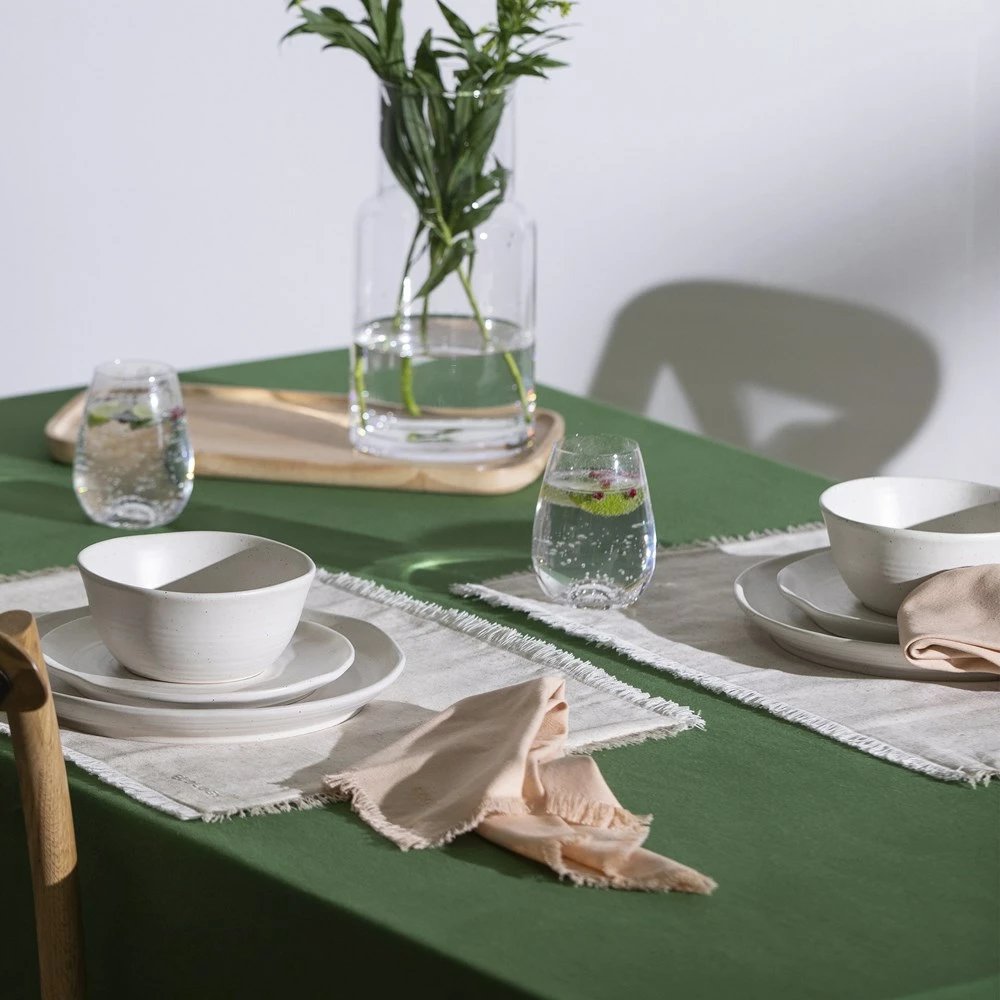 Complement your tableware with the rustic Ecology Fray Tablecloth Dill