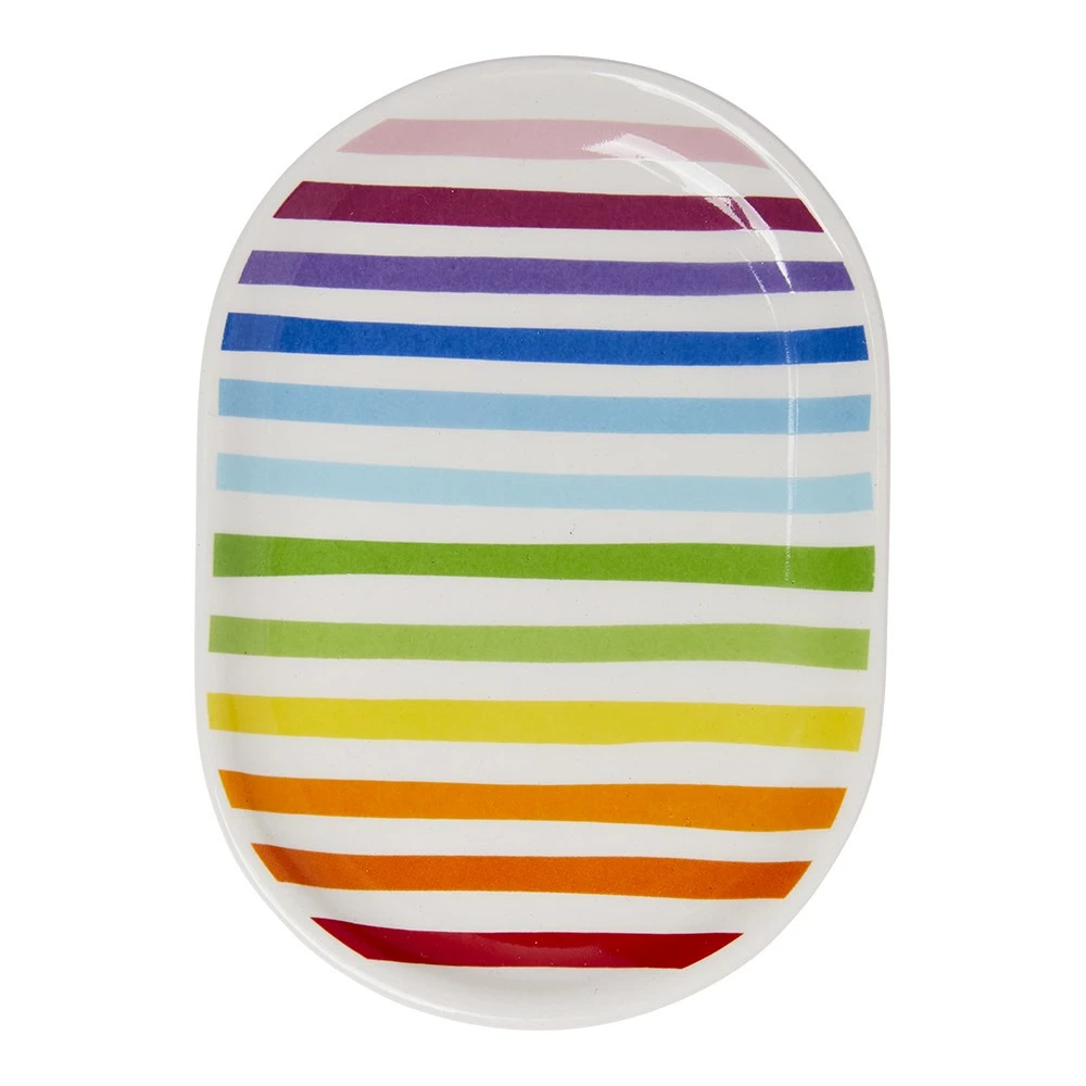 Display your favourite pieces in style by adorning your bedside table or coffee table using the Jewelchic IV Assorted Trinket Tray. Designed in Australia for the young or young at heart, the Jewelchic designs are fun, bold and bright lifting your spirits with every use. Crafted from durable stoneware the trinket tray is available in four cute colourful shapes: Heart, Rainbow, Eye, Oval. However, designs are chosen by random selection. The trinket tray is multi-purpose and can be used for delicate jewellery, keys, loose change or even as mini serving dishes for dipping sauces. Complete the look by combining the trinket tray with the Jewelchic IV Votive Candle Set of 3. For long lasting results we recommend hand washing.