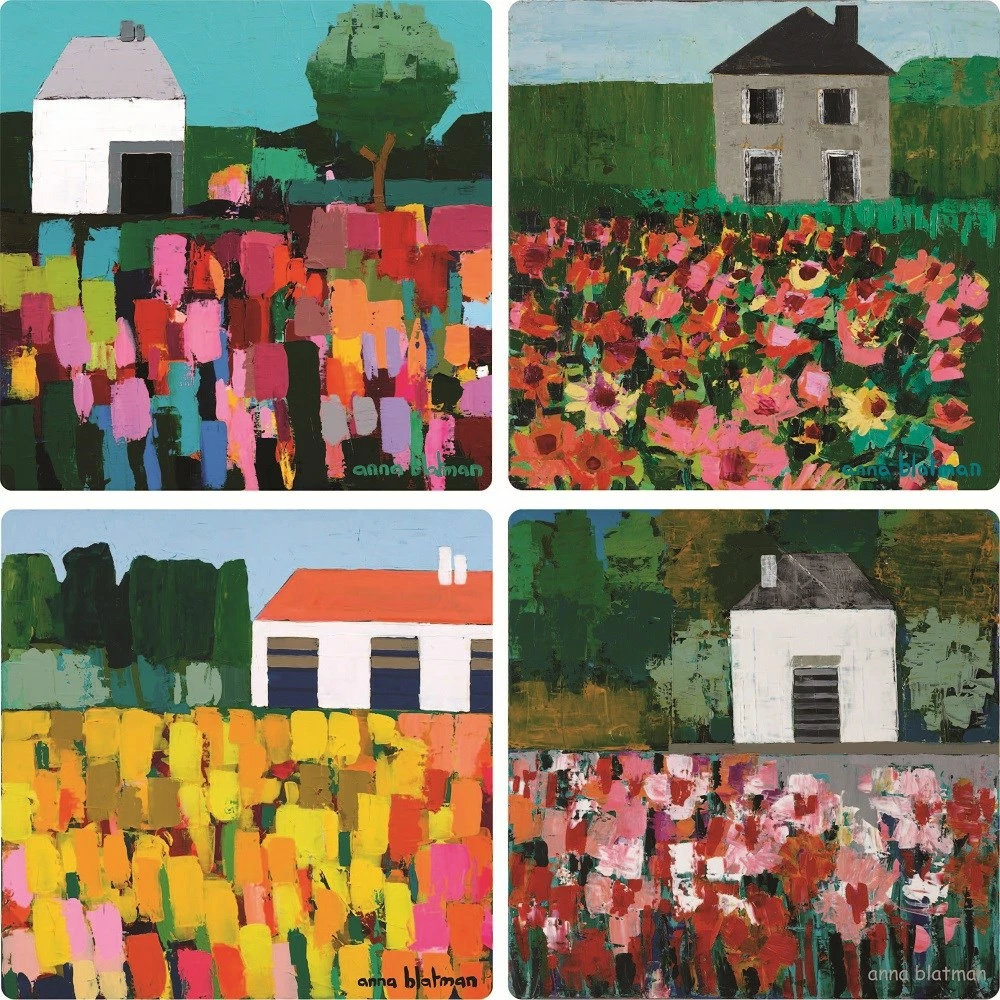 Experience the captivating artwork of the Lilli Rock Anna’s Houses Set of 4 Coasters every time you lift your glass