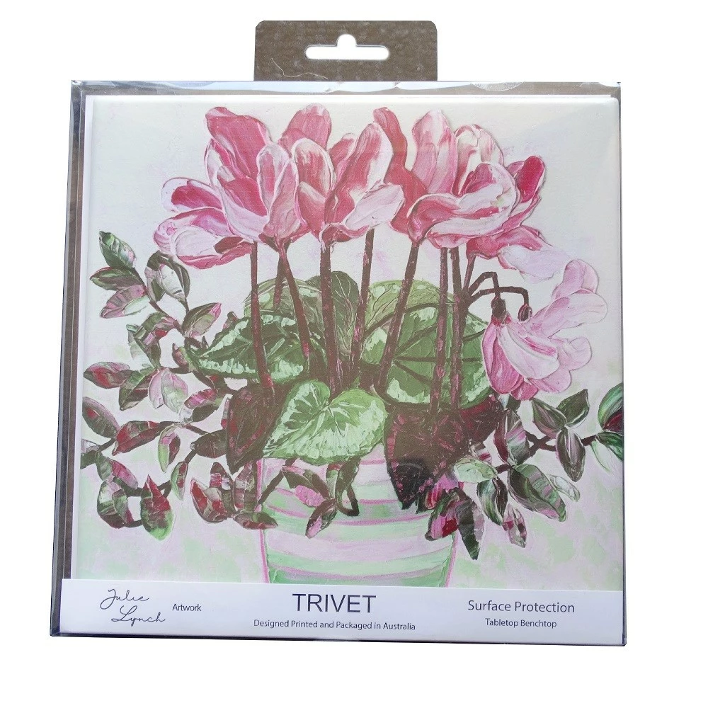 Appreciate a true work of art while preserving your work surfaces with the stunning Lilli Rock Celia Trivet. Acting as a barrier between piping hot pots, pans and dishes and the surface below, the Lilli Rock Celia Trivet offers protection up to 220 degrees Celsius. Crafted from quality dolomite stone and backed with a soft cork layer, it also protects against liquids, scuffs and scratches. Graced with stunning artwork by renowned Australian artist Julie Lynch, the trivet features an intricately hand-painted pot of blooming pink flowers. Easy to maintain with the simple wipe of a damp cloth, the trivet can seamlessly transfer from kitchen to tabletop to infuse both everyday dining and sophisticated gatherings with its elegant style. Pair the Lilli Rock Celia Trivet with the matching Celia Set of 4 Coasters for a chic, coordinated tabletop.