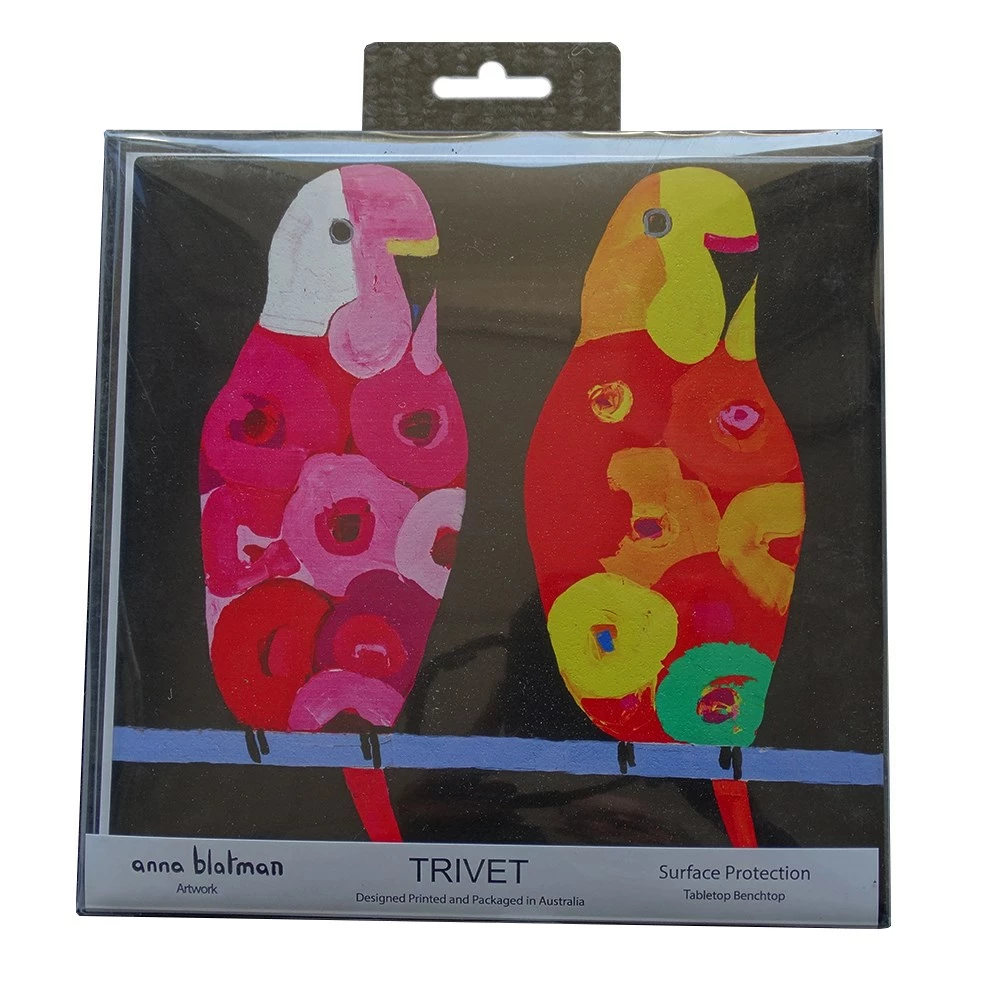 Adorn your kitchen counter with highly protective, super funky Lilli Rock Eva & Zsa Zsa Trivet. Acting as a barrier between piping hot pots, pans and dishes and the surface below, the Lilli Rock Eva & Zsa Zsa Trivet offers protection up to 220 degrees Celsius. Crafted from quality dolomite stone and backed with a soft cork layer, it also protects against liquids, scuffs and scratches. Designed by gifted Australian artist Anna Blatman, the beautiful trivet showcases a gorgeous abstract design of a duo of budgies with unique vibrant floral bodies. Easy to maintain with the simple wipe of a damp cloth, the trivet can seamlessly transfer from kitchen to tabletop to infuse both everyday dining and sophisticated gatherings with its elegant style. Pair the Lilli Rock Eva & Zsa Zsa Trivet with the matching Eva & Zsa Zsa Set of 4 Coasters for a chic, coordinated tabletop.