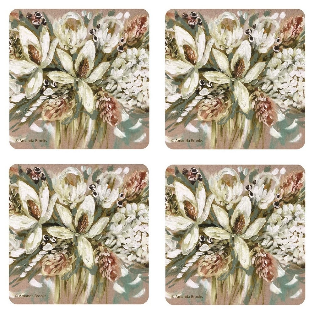 Lilli Rock Magnolia & Banksia Set Of 4 Hardback Coasters