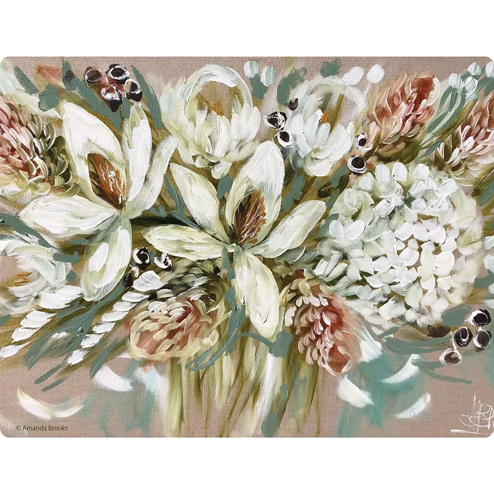 Lay a sophisticated table setting and enhance mealtimes with the Lilli Rock Magnolia & Banksia Set of 4 Hardback Placemats. Made from durable hardboard and with a soft cork backing, the Lilli Rock Magnolia & Banksia Set of 4 Hardback Placemats is the stylish solution for protecting your dining table from scratches, heat and water damage. Exquisitely designed artwork by Australian artist Amanda Brooks graces the placemats and showcases a bouquet of hand-painted magnolia and banksia flowers in a soft natural colour palette. Suitable for everyday dining as well as entertaining, the placemats can be paired with the Magnolia & Banksia Set of 4 Coasters for a coordinated aesthetic. The Lilli Rock Magnolia & Banksia Set of 4 Hardback Placemats are easy to clean with a damp cloth and arrive beautifully boxed for effortless gifting.