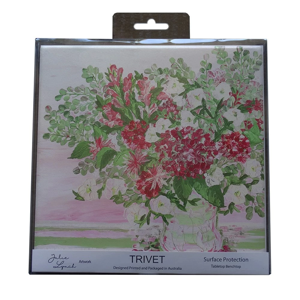 Add an elegant touch to your kitchen counters and dining area with the beautiful Lilli Rock Pia Trivet. Acting as a barrier between piping hot pots, pans and dishes and the surface below, the Lilli Rock Pia Trivet offers protection up to 220 degrees Celsius. Crafted from quality dolomite stone and backed with a soft cork layer, it also protects against liquids, scuffs and scratches. Graced with stunning artwork by Australian artist Julie Lynch, the trivet features an intricately hand-painted vase abundant with a gorgeous display of pink florals and greenery. Easy to maintain with the simple wipe of a damp cloth, the trivet can seamlessly transfer from kitchen to tabletop to infuse both everyday dining and sophisticated gatherings with its elegant style. Pair the Lilli Rock Pia Trivet with the matching Pia Set of 4 Coasters for a chic, coordinated tabletop.