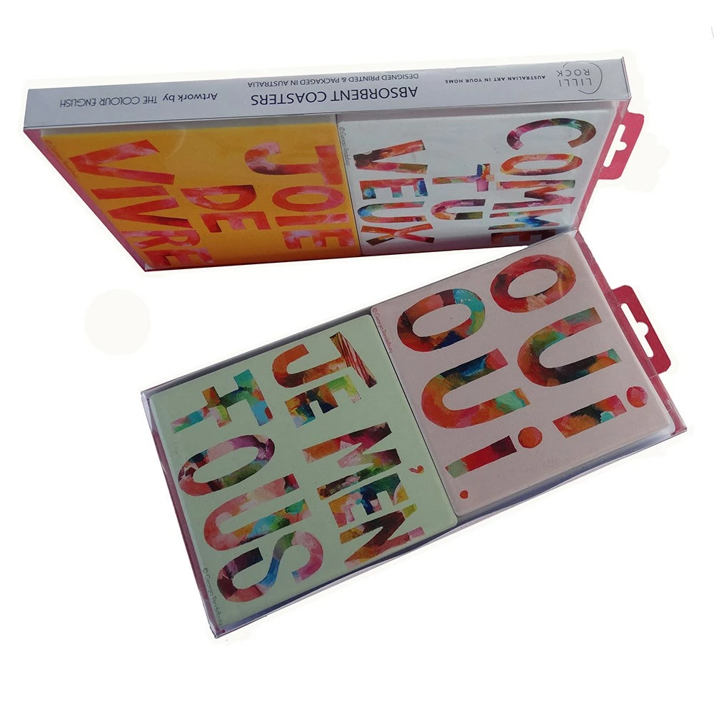 There’s no need for wall art when the Lilli Rock The French Way Set of 4 Coasters adorns the tabletop. Graced with a funky artwork designed by Australian Artist Georgina Pendelbury, the Lilli Rock The French Way Set of 4 Coasters features a variation of four designs with French phrases in a selection of bright colours. Crafted from natural dolomite stone, the coasters do a highly effective job of absorbing liquid condensation build-up on cold glasses, while their cork backing prevents scratches to the surface below. Easy to maintain, the coasters can be simply wiped with a damp cloth when required. Elegantly boxed, the Lilli Rock The French Way Set of 4 Coasters makes a fantastic stylish and functional addition to any breakfast bar, dining or coffee table.