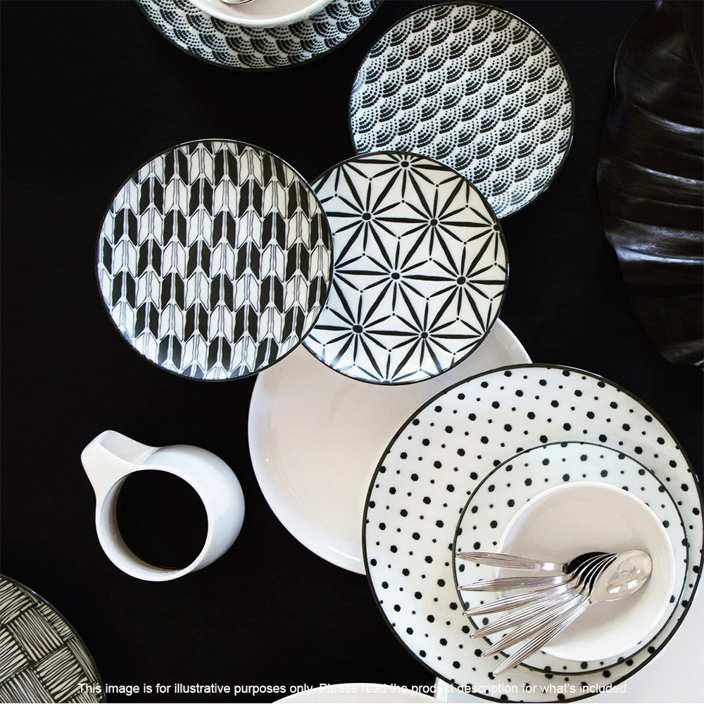 Enjoy fine dining quality with your everyday meals using the Noritake Komon Japanese Porcelain 5 Piece Plate Set! Fantastic for both casual meals and formal dining occasions, this set is a versatile addition to your tableware collection. Each piece is made from fine porcelain which is chip resistant and offers long-lasting appeal. Decorated with beautiful and intricate designs, the Komon Plates are a great way to add visual interest to your dining aesthetic. The sophisticated black and white colour scheme offers a wonderful backdrop for your culinary creations and coordinates well with any existing tableware. Presented beautifully boxed, the Komon Japanese Porcelain 5 Piece Plate Set makes a delightful gift for housewarmings, birthdays and other special occasions. Mix and match with additional pieces from the Komon range for the ultimate coordinated dining aesthetic!