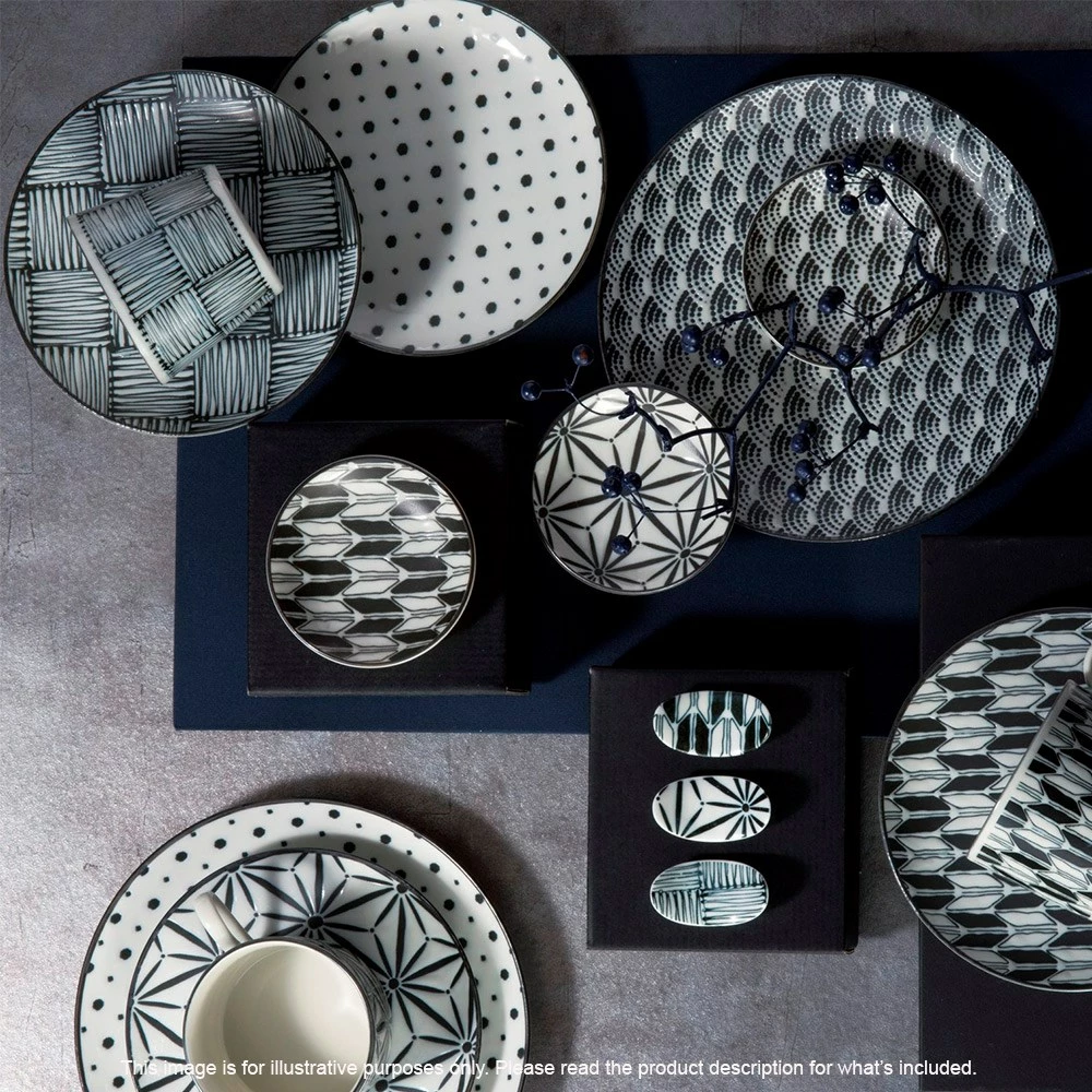 Serve your favourite soup in style using the Noritake Komon Japanese Porcelain 5 Piece Soup Bowl Set 19cm! Fantastic for both casual everyday dining and formal occasions, this set is a versatile addition to your tableware collection. Each bowl is decorated with different intricate designs which offer a wonderful backdrop for your culinary creations and add a touch of visual interest to the table. Made in Japan, the Komon Porcelain Soup Bowls are crafted from fine porcelain which is chip resistant and offers long-lasting appeal. The sophisticated black and white colour scheme coordinates well with any existing tableware and brings a touch of elegance to any dining occasion. Presented beautifully boxed, the Komon Japanese Porcelain 5 Piece Soup Bowl Set makes a delightful gift for housewarmings, birthdays and other special occasions. Mix and match with additional pieces from the Komon range by Noritake for the ultimate collection of eye-catching tableware!
