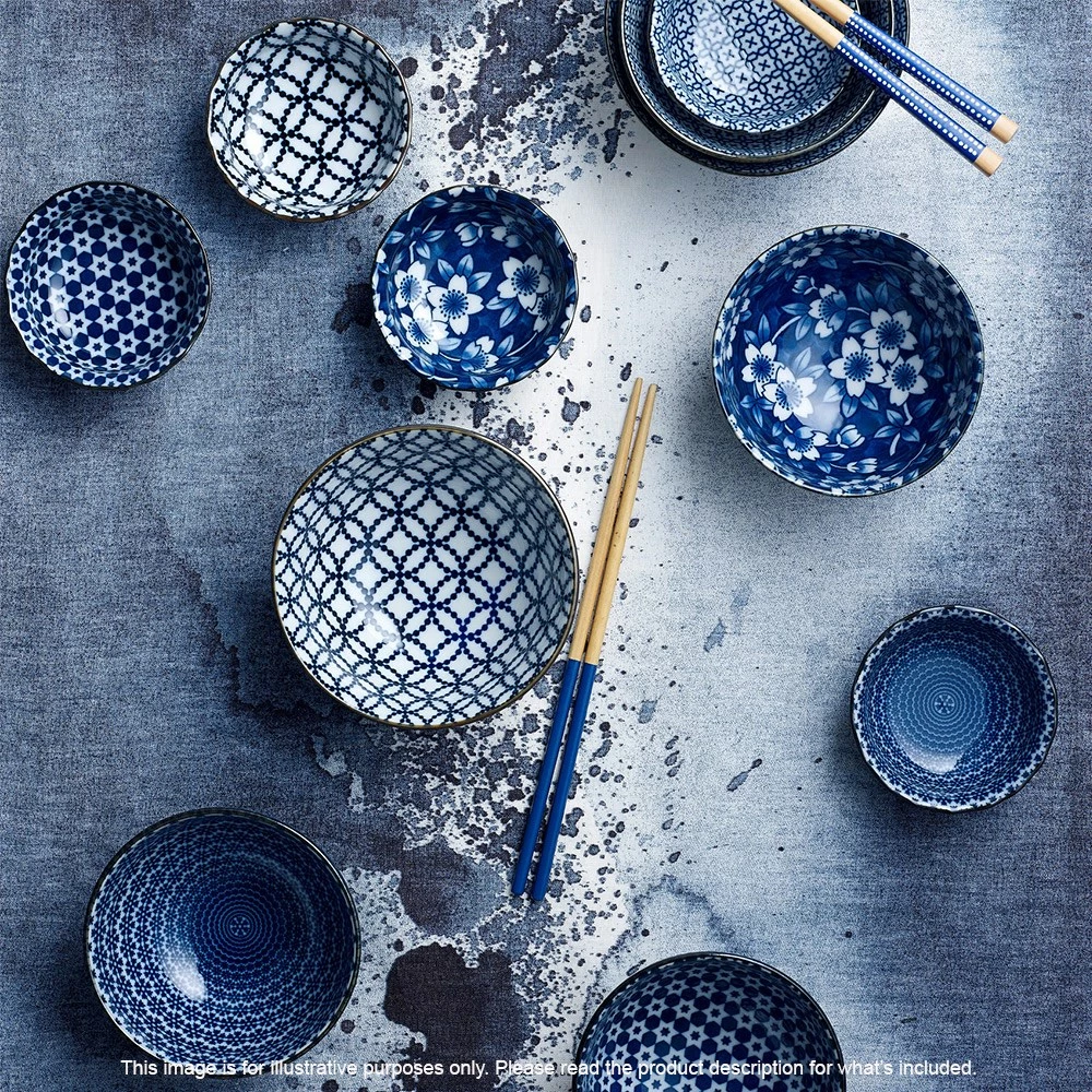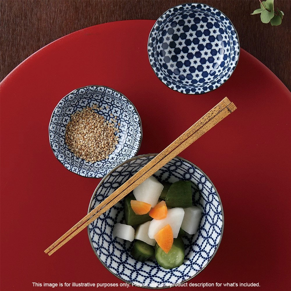 Serve a side of freshly steamed rice to compliment your curry or stir fry dinner with the elegant Noritake Nami Japanese Porcelain 5 Piece Rice Bowl Set! Made in Japan, this set of three rice bowls are crafted from fine porcelain which is chip-resistant and guarantees long-lasting appeal. Each bowl is decorated with a different intricate design that brings a touch of unique contemporary style to the table. The bright blue and white colour scheme coordinates well with any existing dining aesthetic and offers a wonderful backdrop for your delicious culinary creations. The Nami Rice Bowls come presented beautifully boxed and make a wonderful gift for housewarmings, birthdays and other special occasions. Ultra-durable and easy to clean, these bowls are dishwasher safe for your convenience!