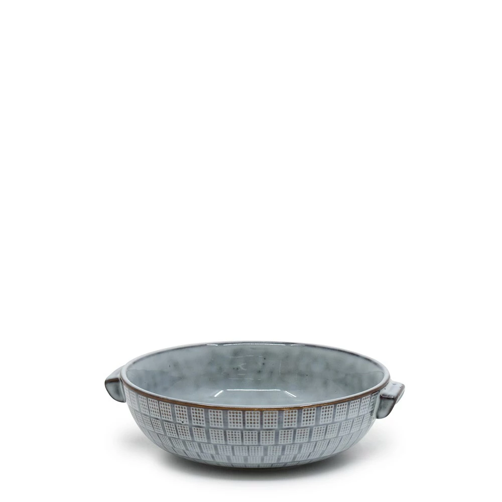 Accompany your dinner with delicious sides served in the Salt & Pepper BowlFood Dish 16x5cm Blue. Crafted beautifully from the very best of stoneware, the Salt & Pepper BowlFood Dish 16x5cm Blue boasts a natural resistance to chips and cracks making it a piece that will remain in your collection for years to come. With stylish handles for passing this dish around the table with ease, fill it with zingy pickles, seasonal steamed veg or buttery baby potatoes to compliment your main meal. The sleek shape and gentle curves of the dish showcase a wonderfully textured mosaic-like outer embossment that elevates a simple structure to a luxury piece of tableware. With a gentle blue colour and standout rims, the dish is finished with a reactive glaze to ensure uniqueness in every piece making it a fantastic addition to your tabletop whether there’s a casual catchup or a refined gathering of friends to be enjoyed. Decorate your table with the Salt & Pepper BowlFood Dish 16x5cm Blue along with other gorgeous serving pieces from the BowlFood range.